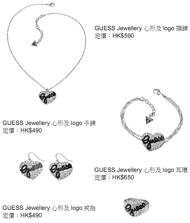 這個最新的閃石心形系列,無論是配襯日常服飾或穿梭大小parties,都必定能吸引旁人的目光。佳節來臨前,趕快晉身成為sexy GUESS girls的一分子,又或是把握時機,向您所愛的人送上這窩心的禮物來表達您的心意吧!