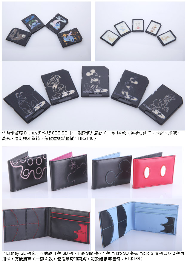 另一款矚目登場的是Disney SD卡套,分別有米奇和美妮,共4款設計。SD卡套可收納4張SD卡、1張Sim卡、1張micro SD卡或micro Sim卡以及2張信用卡,方便隨身攜帶多張記憶卡。