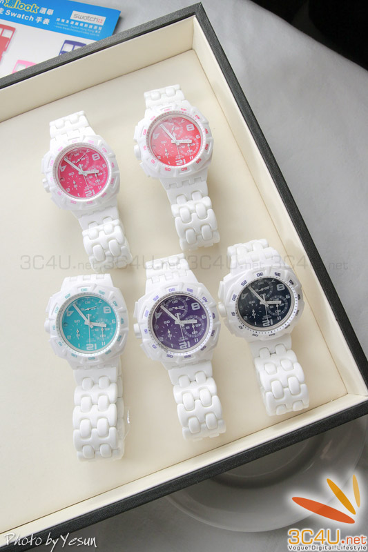 | Swatch成立之初,以革命性塑膠手錶打入市場,頓時成為世界焦點。今個春夏季,Swatch回歸80年代,以「COLOUR CODES」為主題,繼早前推出20多款Shinny和Matt的GENT塑膠手錶,Swatch更將於4月隆重推出10多款以近期大熱的monotone為基礎,配合運動型矽膠錶帶和潮型白色鍊帶的「Chrono Plastic Collection」 |