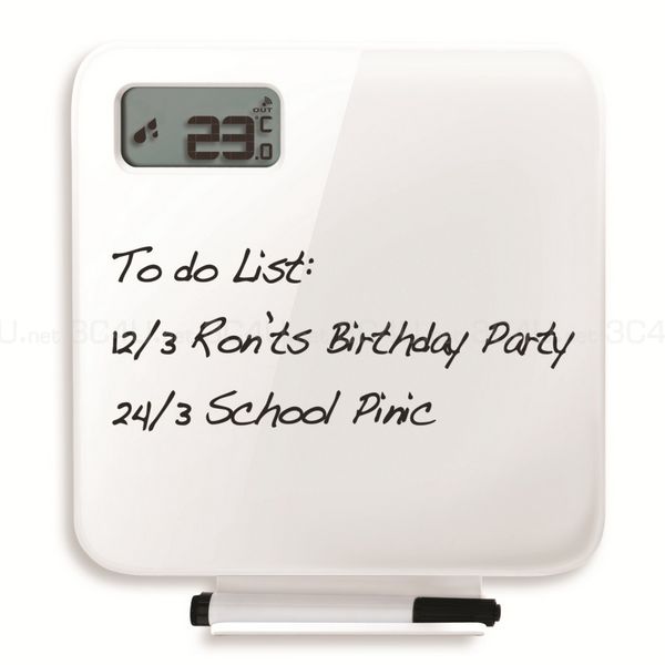 電子天氣留言板體積只有8 x 8吋,外型細小輕巧,安裝方便,可直接固定於牆身。特製塗層及白色的高光澤板面能讓你把任何重要或窩心的訊息寫上,配合用家的不同需要。
