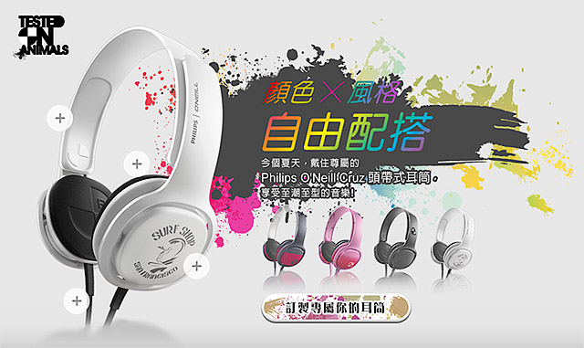 ”TESTED ON ANIMALS ”由始至終是 Philips | O’Neill 的品牌理念,ANIMAL TEAM 的組成取自全球在衝浪和滑雪中最頂尖和最堅毅的運動選手,每一款耳筒的獨特性能都能透過他們最自然,真實的生活表現出來。而在2013年,隨著 ANIMAL TEAM 中新成員的加入,他們除了對運動有著熱誠和堅毅的態度,更加對著生活有獨特的品味,對時尚潮流有著獨特的觸覺。因此,2013年 Philips | O’Neill 在產品中大膽加入顔色和潮流的元素,在全新推出的 CRUZ 系列中,更加大玩 mix&match 的顔色搭配風格,務求滿足到每一位潮流觸覺者都能擁有一隻個人獨一無二的耳筒。在今年8月1日,正式發佈 Philips | O’Neill CRUZ 頭戴式耳筒專屬設計網站,只需登入以下網址即可設計一隻個人專屬的耳筒,迎接一個充滿魅力的夏日。