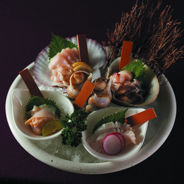 薈萃活帆立貝、活北寄貝、活象拔蚌、馬刀貝及翡翠螺刺身,鮮爽清甜滋味令人難以抗拒。