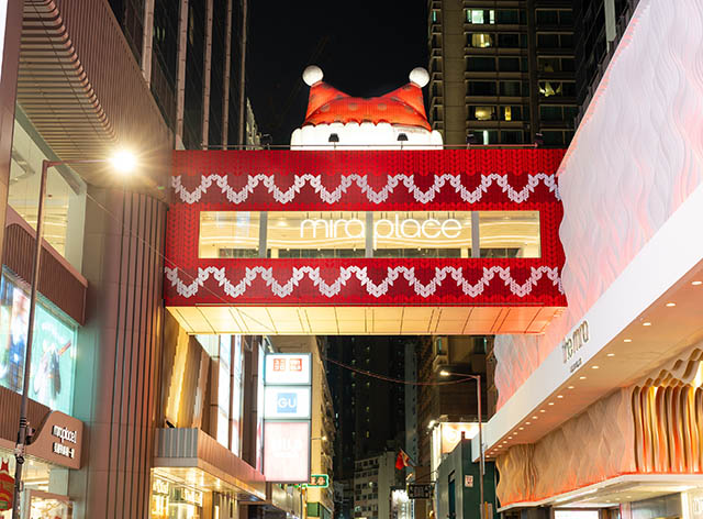暖「粒粒」節日氣氛更由場內延伸至場外!位於金巴利道的Mira Place 行人天橋冒起了一頂大大的巨型充氣聖誕冷帽,為天橋增添暖心小點綴;諾士佛臺旁邊的Mira Steps 亦化身聖誕溫暖階梯,傍晚5時亮燈後更有節日氣氛!