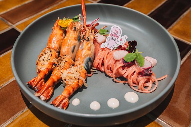 復古餐桌上的粉紅焦點非它莫屬!大大隻香煎鮮蝦彈牙飽滿,配上裹著濃醇紅菜頭忌廉醬的彈牙意粉,清甜中混着奶香,鮮味無窮;同時意粉的粉紅色澤與餐廳裝飾遙相呼應,每一口都充滿暖融融的美式復古滋味,視覺與味覺的雙重契合實在是Foodie打卡神菜。