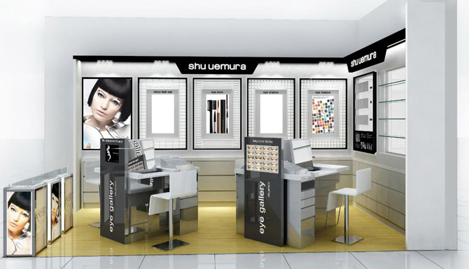 植村秀以不斷創新作為品牌理念,並致力將科技、藝術及大自然的元素和諧地融入產品的設計及概念中。明亮耀目的eye gallery以經典時尚的白色和半透明為基調,帶和風的明快線條與精心鋪陳,呈現源自東京的時尚脈搏,同時更能突出豐富多色、造型多姿的各式彩睫。新店細意設計不同區域滿足顧客不同的需要,包括:
