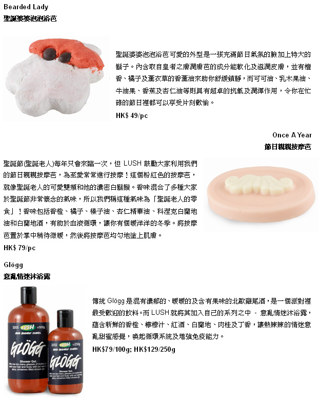 | 又到聖誕!又到聖誕!一向玩味十足的LUSH今年走遍全世界,並以Around The World為題,網羅各種意想不到的天然材料,蒐集各國傳統習俗、傳奇故事,集結成一系列充滿不同民族元素的節日單品及聖誕禮盒,帶你走進一個充滿各國民族色彩的歡欣世界。 |