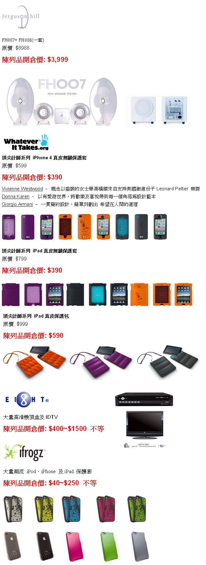 ECT 陳列室 於 5月13日到5月15日,於旺角星際城市3 樓309號展開一連三日陳列品開倉優惠,部份陳列品低至1折發售!包括: AV 產品, iPhone / iPod 配件及其他精選產品,歡迎蒞臨參觀選購!